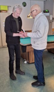 Een speciale vermelding voor Peter Goes die bereid was in te vallen, hij werd eerste in poule H, hij stond zijn prijs af aan Joop Zwart, hulde!! klik op de pijltjes in de foto’s voor een vergroting